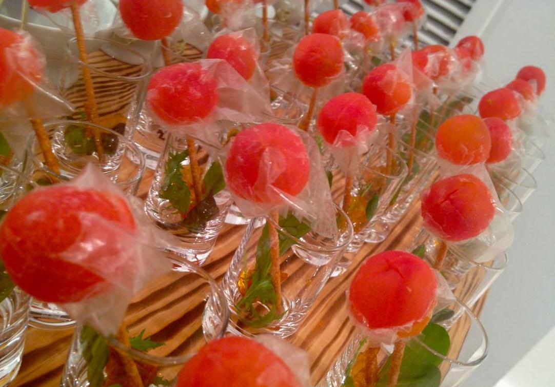 chupa-chups relleno de pan tumaca Vil-la Centcelles y el bombón líquido (de