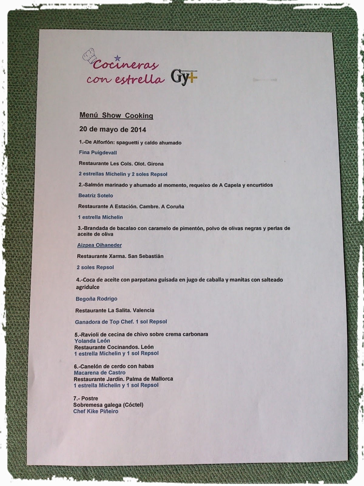 | Menú del show cooking |