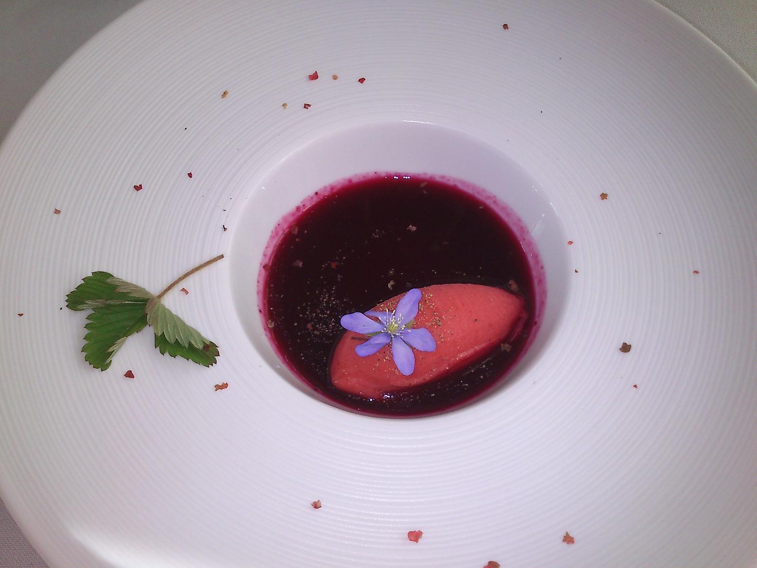 | sorbete de fresas con sopa de remolacha y pimienta |