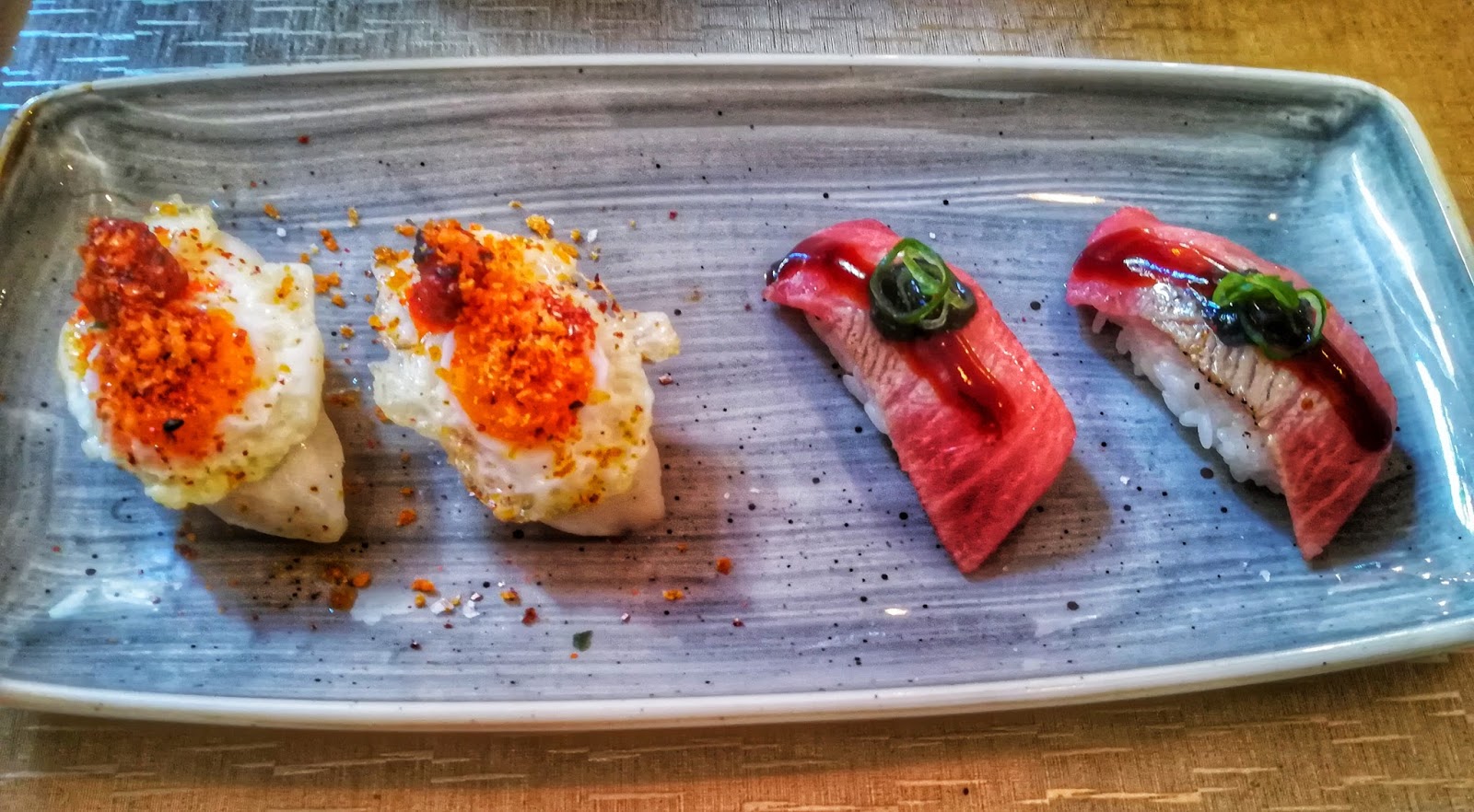 Lo menos que se puede decir de uno de los platos (bocados) que probamos como el Niguiri de toro es que estaba muy bueno.