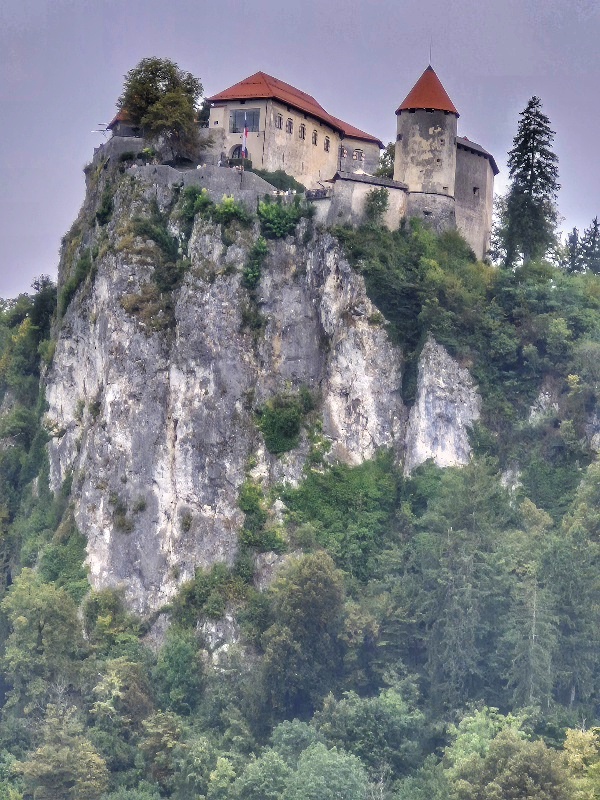 El castillo es una fortaleza medieval que se encuentra ubicada en un acantilado rocoso con vistas panorámicas al lago y a los majestuosos Alpes Julianos.