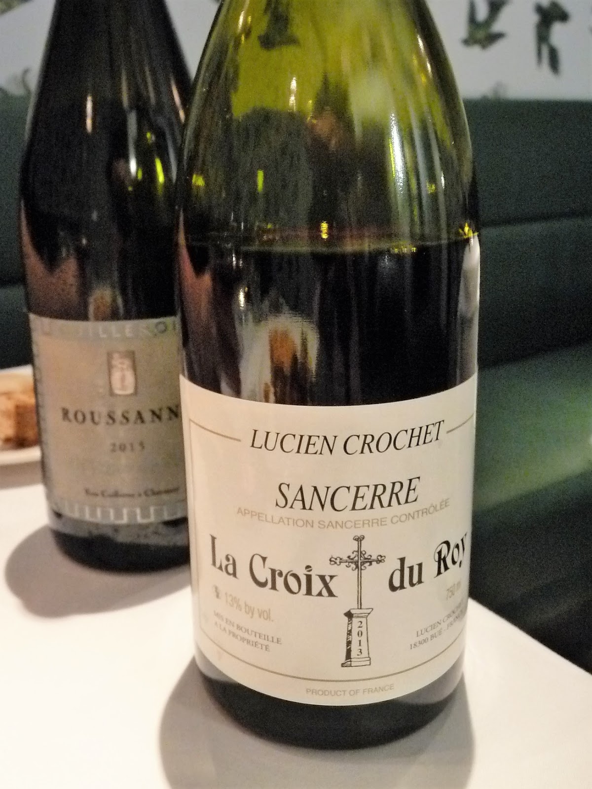 Cada uno de los platos iba armonizado con un vino por sugerencia del jefe de sala y por eso la velada transcurrió entre un borgoña de la zona de Hautes Côtes de Beaune, un Anisos Vallagarina 2010, bianco, ecológico de E.Rosi, un Lucien Crochet (Sancerre) La Croix du Roy o un Roussanne 2015, entre otros maravillosos y elegidos vinos.