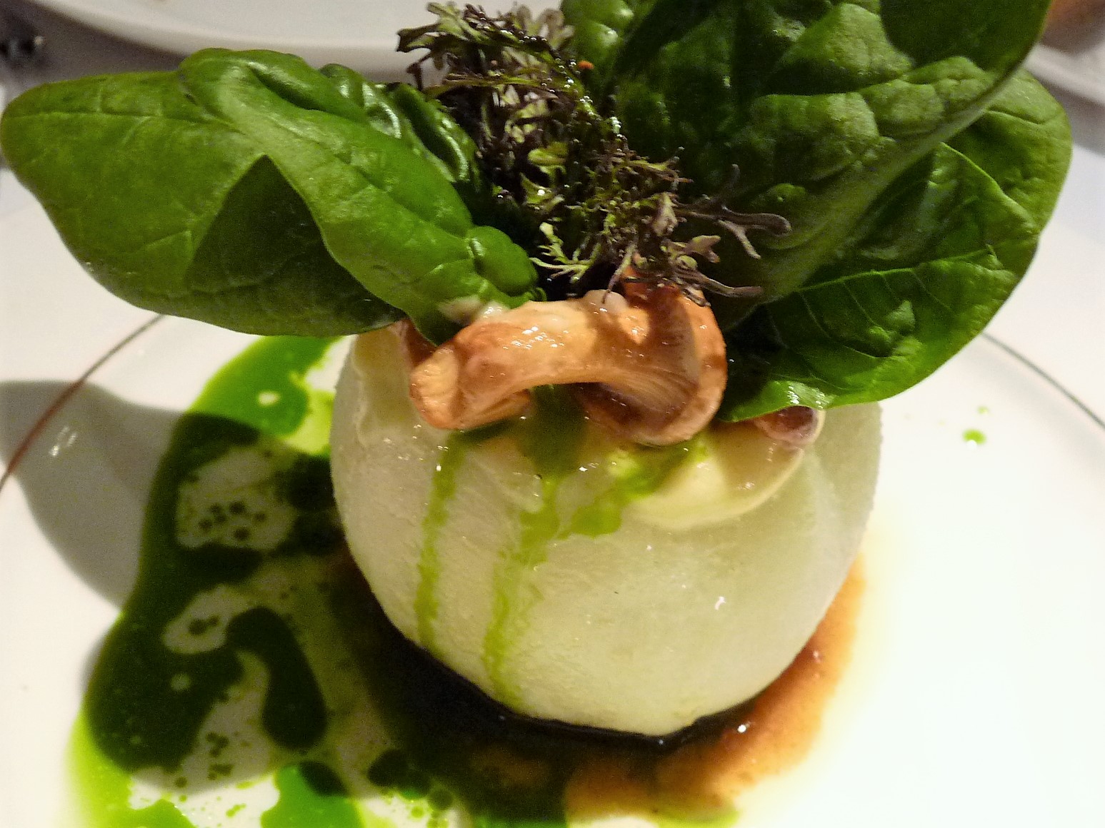 Sin embargo, uno de los platos más sorprendentes de cuantos probamos (por eso es necesario salir fuera de nuestro ombligo para ver qué hacen en otros países) fue el kohlrabi al vapor con perlas de centeno y migas de pan.