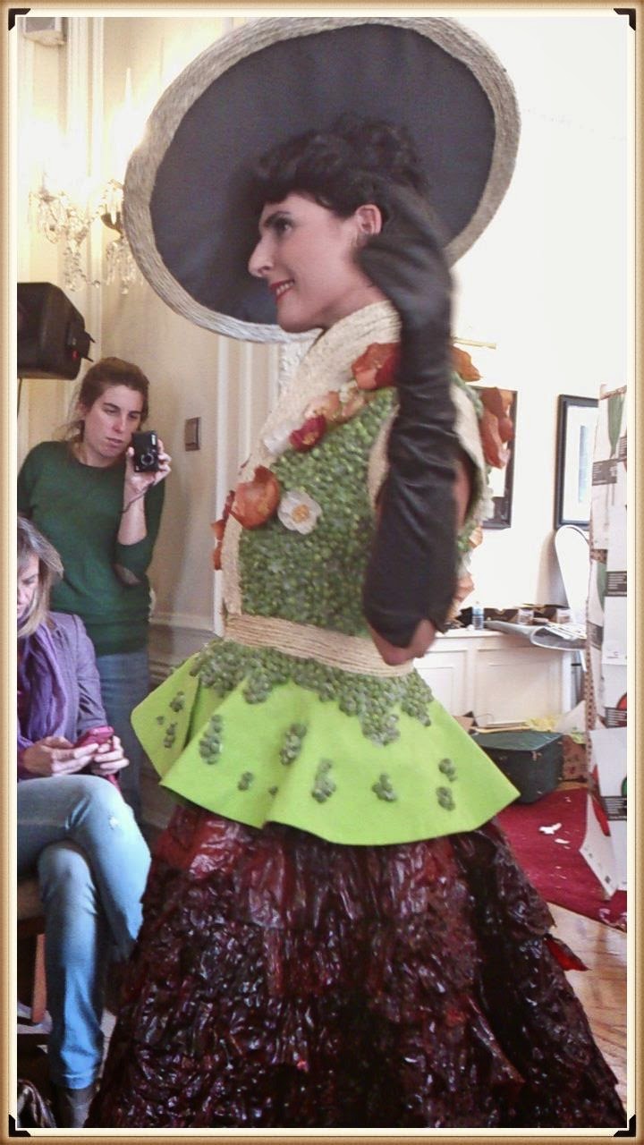 Y no fue la única sorpresa que tenían reservado el alcalde de Calahorra, Luis Martínez-Portillo, y su corporación en el Centro Riojano de Madrid, ya que antes de la demostración gastronómica llevaba a cabo por los cocineros Ventura Martínez (restaurante Chef Nino); Manuel Alvarez (Restaural); Esther Barco (Las Vegas), Esteban Alegria (La Comedia y Máximo Darriba, del Centro Riojano, junto al pastelero Gabriel Pérez (Flor y Nata) y el heladero Andrés Sirvent, los alumnos de Grado de la Escuela Superior de Diseño de la Rioja realizaron un desfile de moda cuyas creaciones estaban confeccionados con verduras.