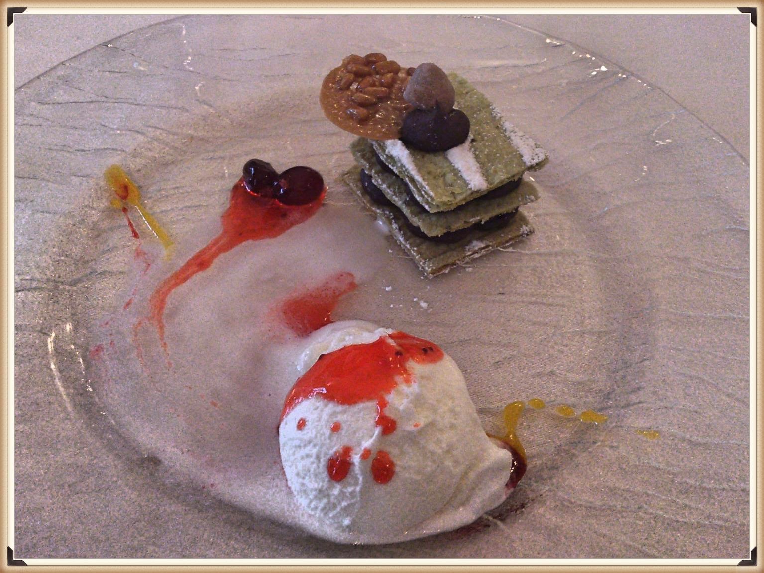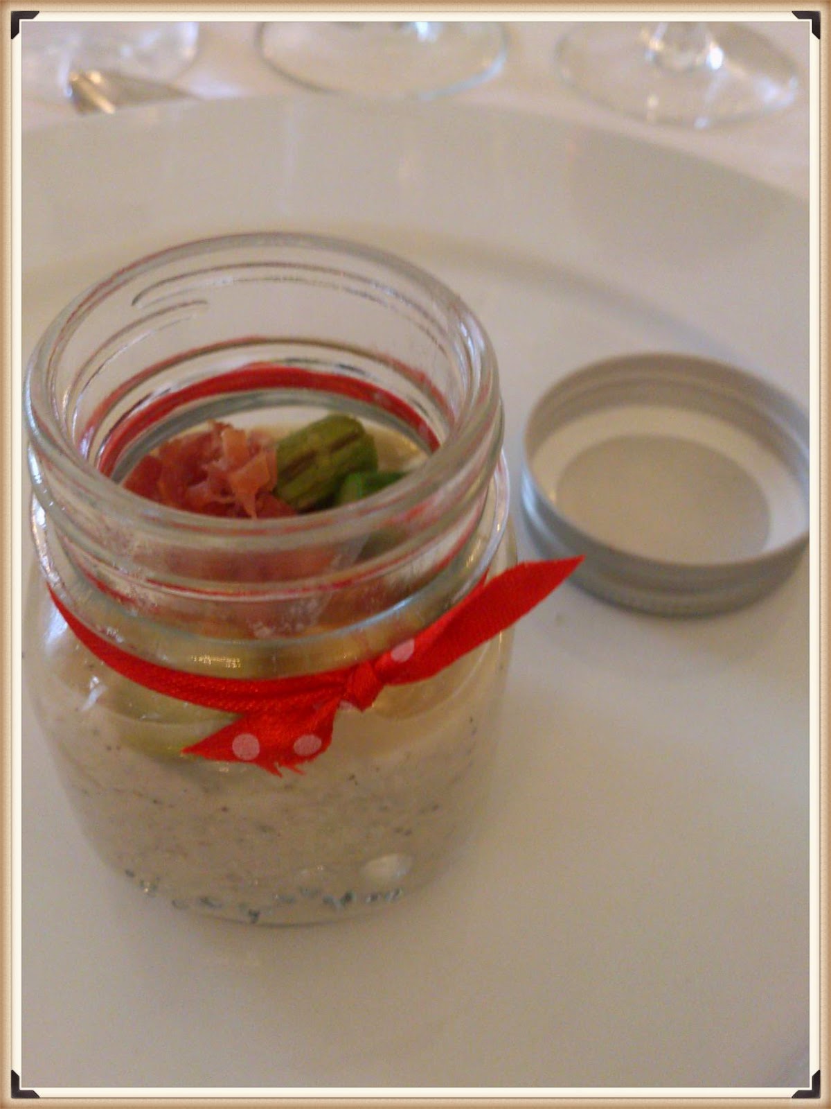 Del menú que los asistentes pudimos disfrutar destacamos los espárragos blancos y verdes frescos con salsa de trufa y huevo escalfado, la brocheta de alcachoda, jamón ibérico y boletus y, sobre todo, el ‘tramposo’ postre a base de hojaldre de guisantes con ganache de morcillla dulce de Calahorra y helado de queso de cameros y arándanos, espectacular.
