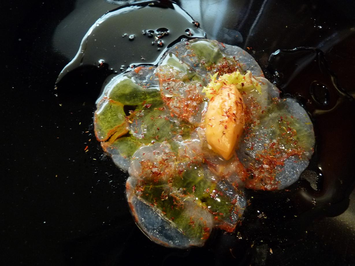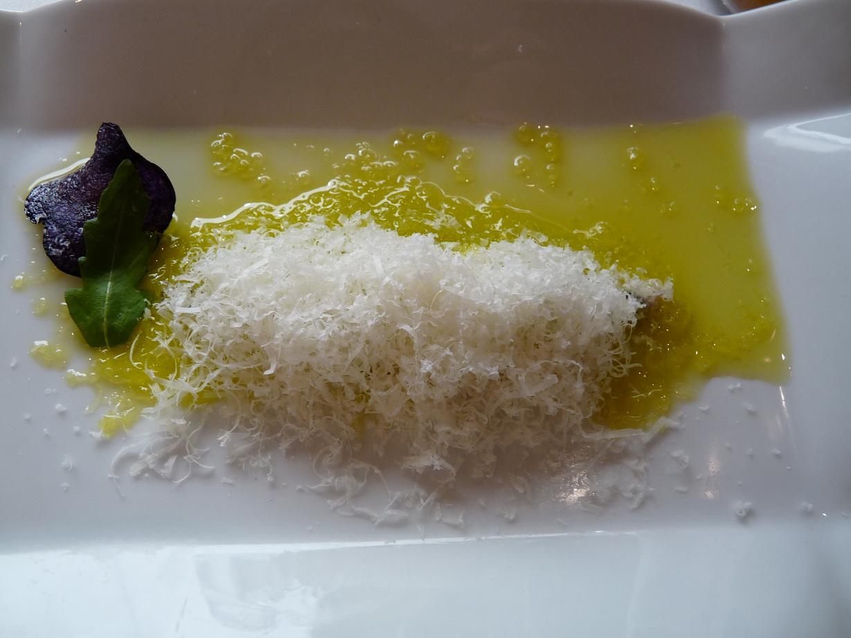 huevo, foie de abejar y trufa. Está de muerte, pero, un consejo: mezcalr el conjunto de elementos permite que se liguen los sabores.