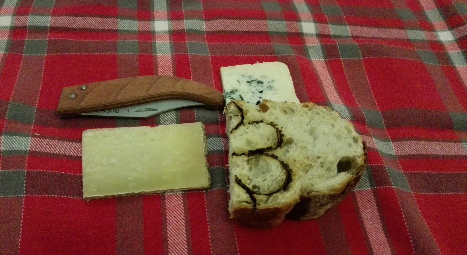 Así el prepostre, ‘Jatillo’, es un adalucismo de ‘atillo’, te deja una ‘chaira’ y una selección de quesos diseñados por el chef, en un atillo de mantel de cuadros que también serviría de cachirulo.