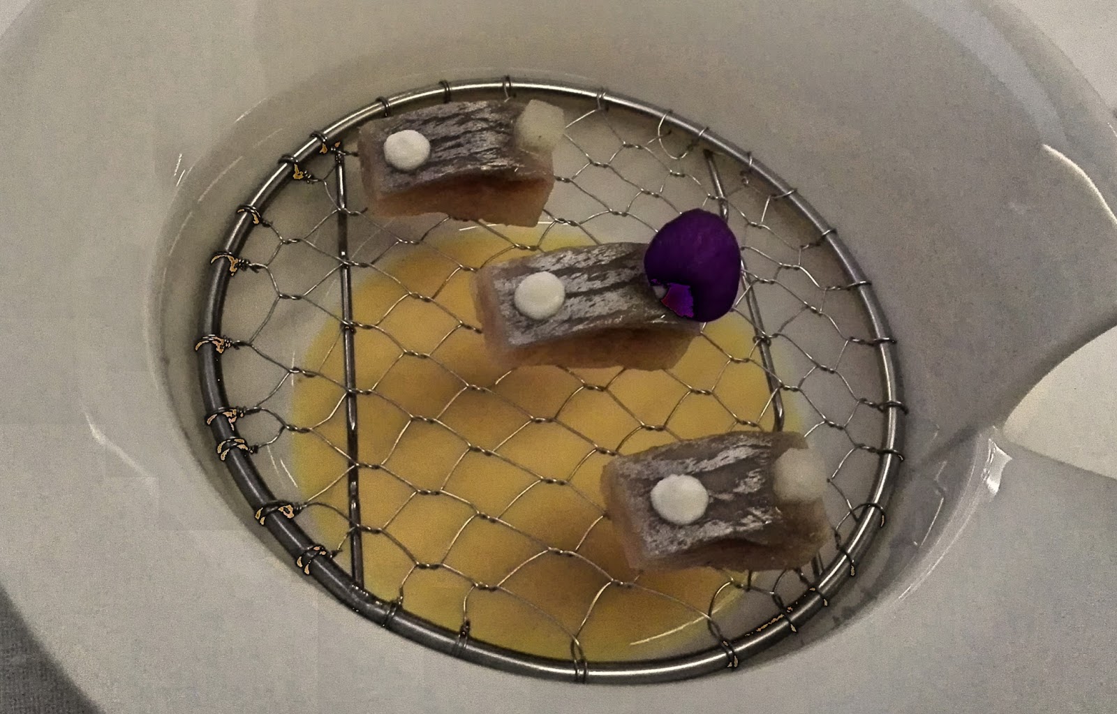 El arenque de la corredera, un plato que Kisko presentó en Córdoba Califato Gourmet, nos devuelve a la realidad de su pasión: dulce y salado en perfecta armonía sobre una base mejorada y espectacular.
