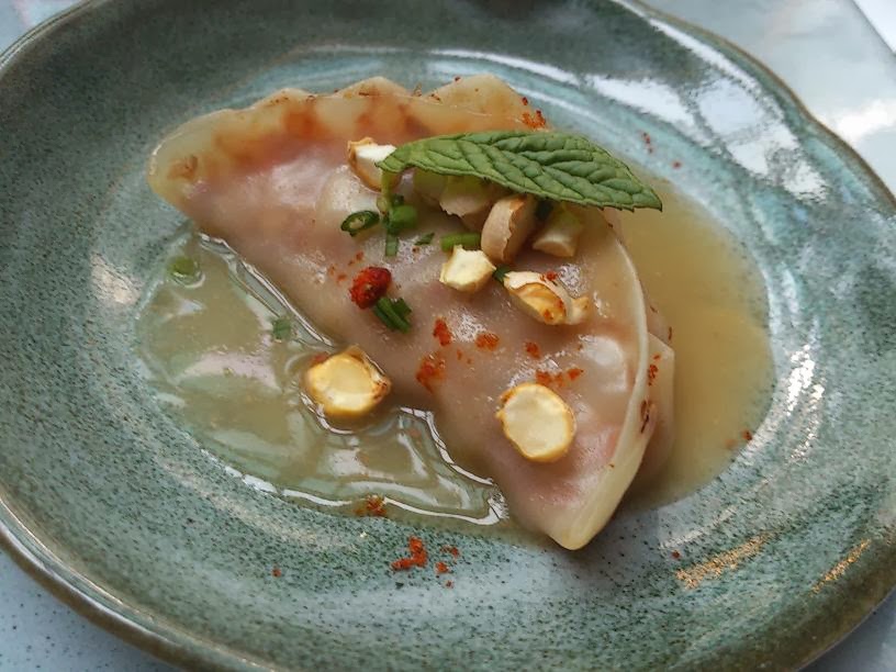 El toque castizo, lo puso esa especie de dimsun que aquí llaman Jiaozi relleno de cocido madrileño con yerbabuena y sus jugos, sorprendente.