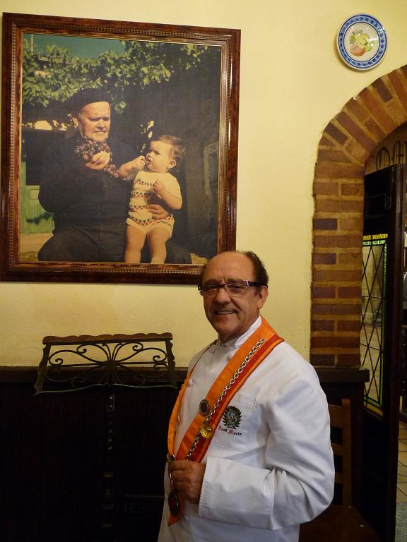 Pero no sólo eso, porque este cocinero es un emprendedor que no deja de lado la formación profesional -se encuentra estudiando un master de gestión empresarial en una conocida escuela de negocios- y por sus mesas pasan las personalidades académicas, políticas, empresariales…más importantes de España. Su humanidad trasciende y supera la maestría con la que maneja sus fogones, por eso en el comedor no hace distingos y sus clientes, aunque alguno se moleste por estar en lista de espera- salen satisfechos del restaurante porque este hombre tiene un credo: «darle al comensal lo que le gusta». Tal vez por eso las mesas se llenan de japoneses, franceses, italianos…que se quieren hacer fotos con él como si fuera Cristiano Ronaldo. Bueno, en cierto modo lo es, el CR7 del cochinillo (Cochinillo Rico). No hay duda. ¡Ah, se me olvidaba lo del cuadro!. Quienes aparecen en él son su padre y la mayor de sus cuatro hijos, a la sazón, misionera. Que quede claro.
