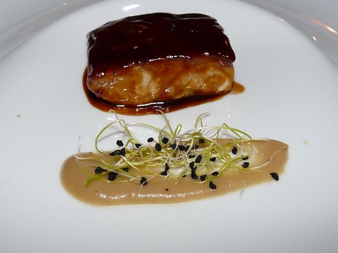 Buena muestra de esta multiculturalidad que practica en los fogones es el espectacular esturión lacado con puré de Tupinambougr (un tubérculo que sabe a alcachofa). Este plato a base de esturión fresco es todo sabor; todo potencia externa y equilibrio interno: sensacional. Envuelto en un foumé de pescado, jugo de ternera y germinado de ajos, te transporta a donde quieras. Lo mismo ocurre con otro de los platos de su carta, la merluza con vieiras, mejillones y su salsa, suave y delicada, casi aterciopelada, gracias al toque de mantequilla.