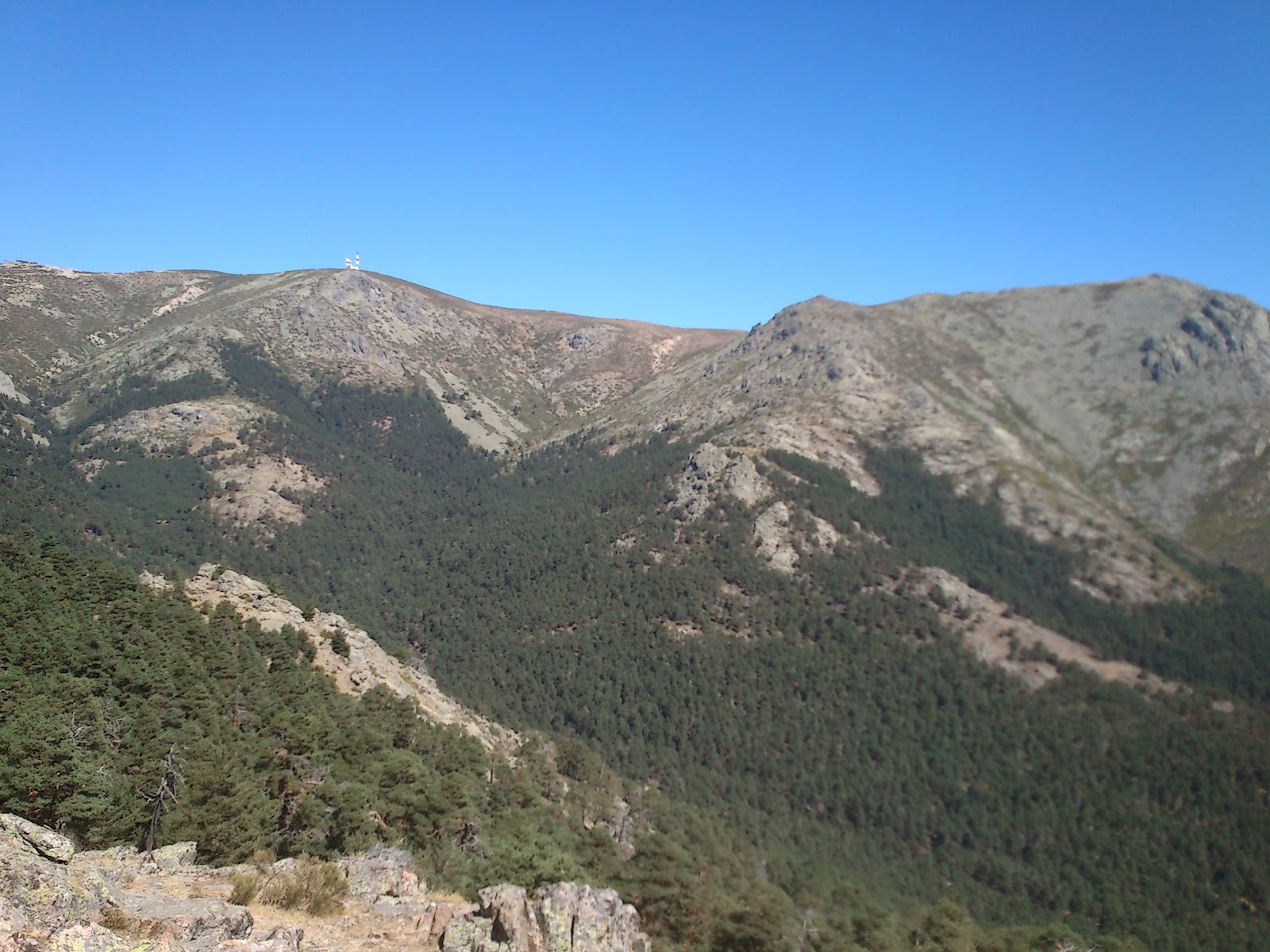 El valle está situado a las faldas de la Bola del Mundo (Alto de Guarramillas de 2.265 m) y La sierra de la Maliciosa (2.227 m.), cuyas cumbres aparecen nítidas y casi al ras desde el Mirador de las Canchas. Si consigues llegar hasta él, a unos 1900 m.(muchos son los llamados y pocos los elegidos) sabrás lo que es bueno. La naturaleza y tú. Bosques de pino silvestre salpicados por una vegetación abundante en helechos (como ocurre con la senda Ortiz, de la que luego os hablaré) y montañas por todos lados. El embalse de Manzanares, al fondo y a la izquierda; la Bola del Mundo con sus repetidores de tv más a la izquierda y en lo más alto; la Maliciosa, enfrente; Navacerrada y su emblase a la derecha…Por suerte, en la cima de las Canchas existen unos paneles explicativos con el que se entiende perfectamente lo que estás viendo.