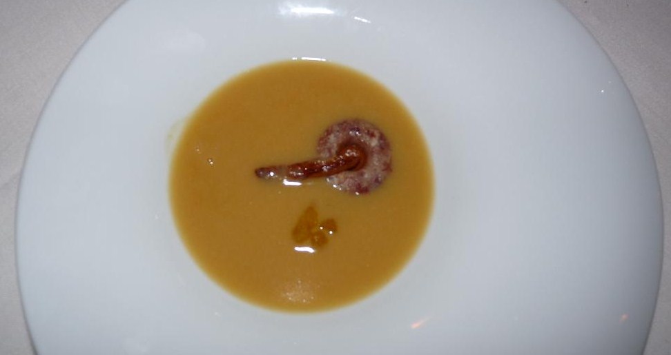 Como novedad en la nueva carta, Victor está trabajando con un potito de verdura,huevo, jamón –y un toque de hierbabuena- y un rodaballo con crestas de gallo y caldo de hinojo (plato de mar y montaña), que apunta maneras, pero que aún necesita redondear.