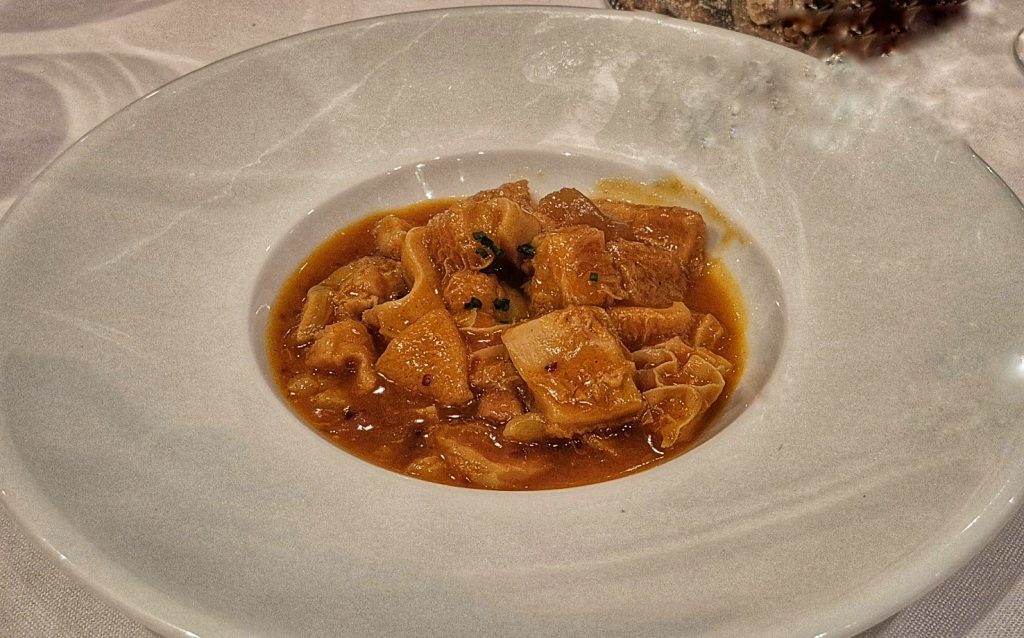 Extraordinario también el huevo poché con guisantes y mas que interesantes los callos a la madrileña.