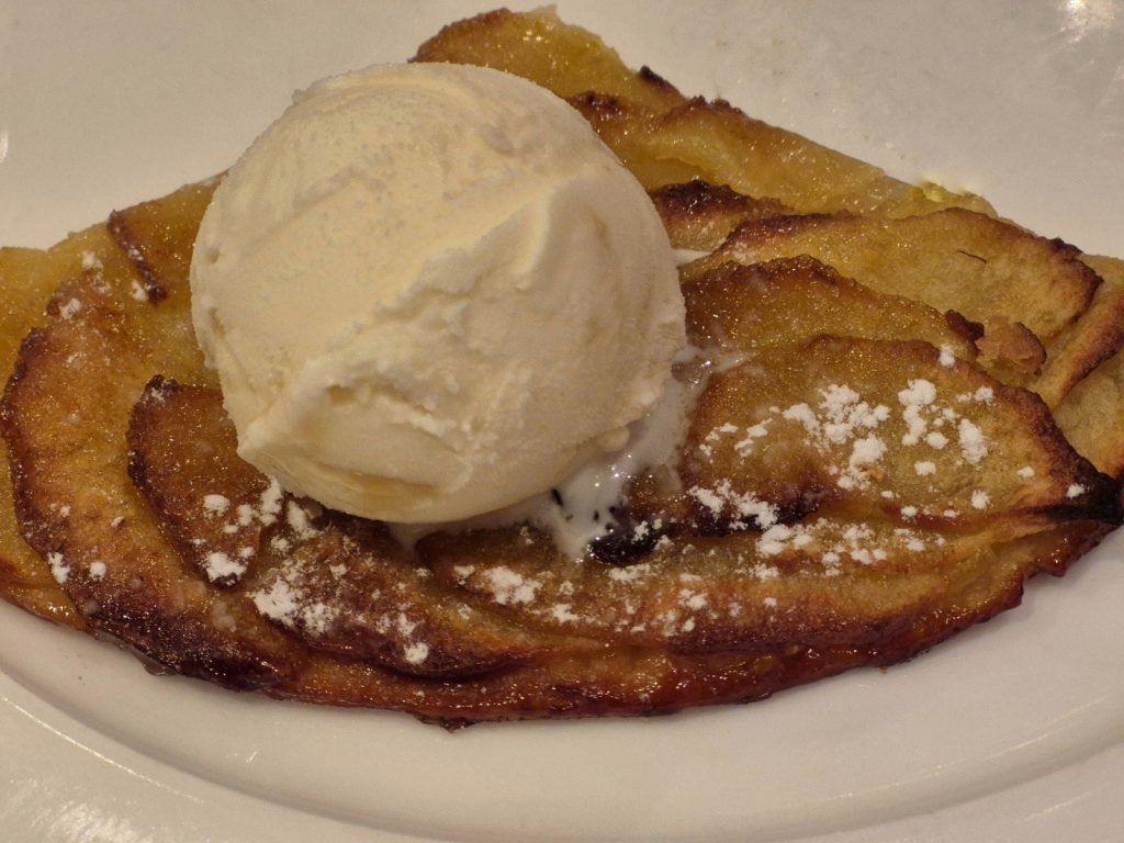 También está de matrícula de honor la tarta Fina de Manzana («La Auténtica») con bola de vainilla y nueces de Macadamia.