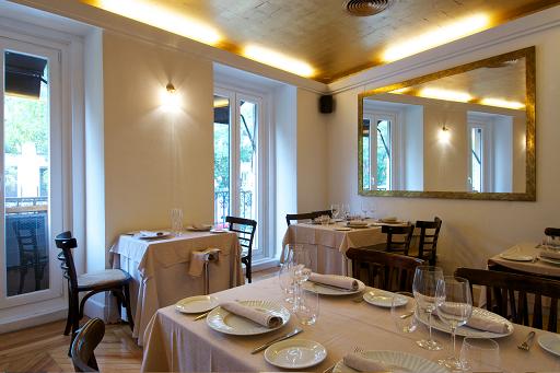 Como os he contado, el restaurante dispone de dos plantas, cada una de las cuales tiene una filosofía diferente. En el piso de abajo, la propuesta es más informal. Con una enorme barra y mesas altas, en esta sala no hay carta, si no que los platos, que cambian continuamente, se muestran en una pizarra y se sirven en medias raciones, a precios muy asequibles, entre 6 y 7 € cada plato. Entre los platos que se pueden degustar -dependiendo de la temporada y la disponibilidad de los productos en el mercado- están el Pane Frattau con uova di gallinilla “in libertá” (milhojas de pan sardo con salsa de tomate, queso pecorino y huevo de pollita), Carciofi alla Giudea, Vitello Tonnato all antica, Sardinasa beccafico o Tagliolini con spremuta di Sicilia.