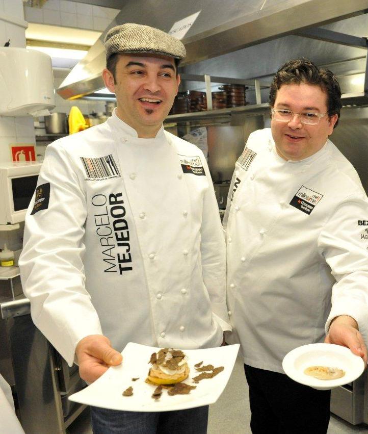 NUEVAS ESTRELLAS MICHELIN 2012 No hay ningún nuevo 3 estrellas Nuevos 2 estrellas: Abac (Jordi Cruz, Barcelona), Diverxo (David Muñoz, Madrid) y El Club Allard (Diego Guerrero, Madrid) (foto superior). Nuevas 1 estrella: Marqués de Riscal (Francis Paniego, La Rioja), Solana (Ignacio Solana, Ampuero, Cantabria), Rodrigo de la Calle ( Rodrigo de la Calle, Aranjuez), Nerua – Guggenheim Bilbao (Josean Martínez Alija, BIlbao), El Choco (Kisko García, Córdoba), Lillas Pastia (Carmelo Bosque, Huesca), Casamar (Quim Casellas, Llafranc), Es fum (Thomas Kahl, Palmanova), Jardín (Macarena de Castro. Port d’Alcudia), Annua (Óscar Calleja, Sant Vicente de la Barquera), Casa Marcelo (Marcelo Tejedor, Santiago de Compostela, en la foto con Marcos Morán), Silabario (Alberto González, Tui), Maralba (Almansa-Albacete).