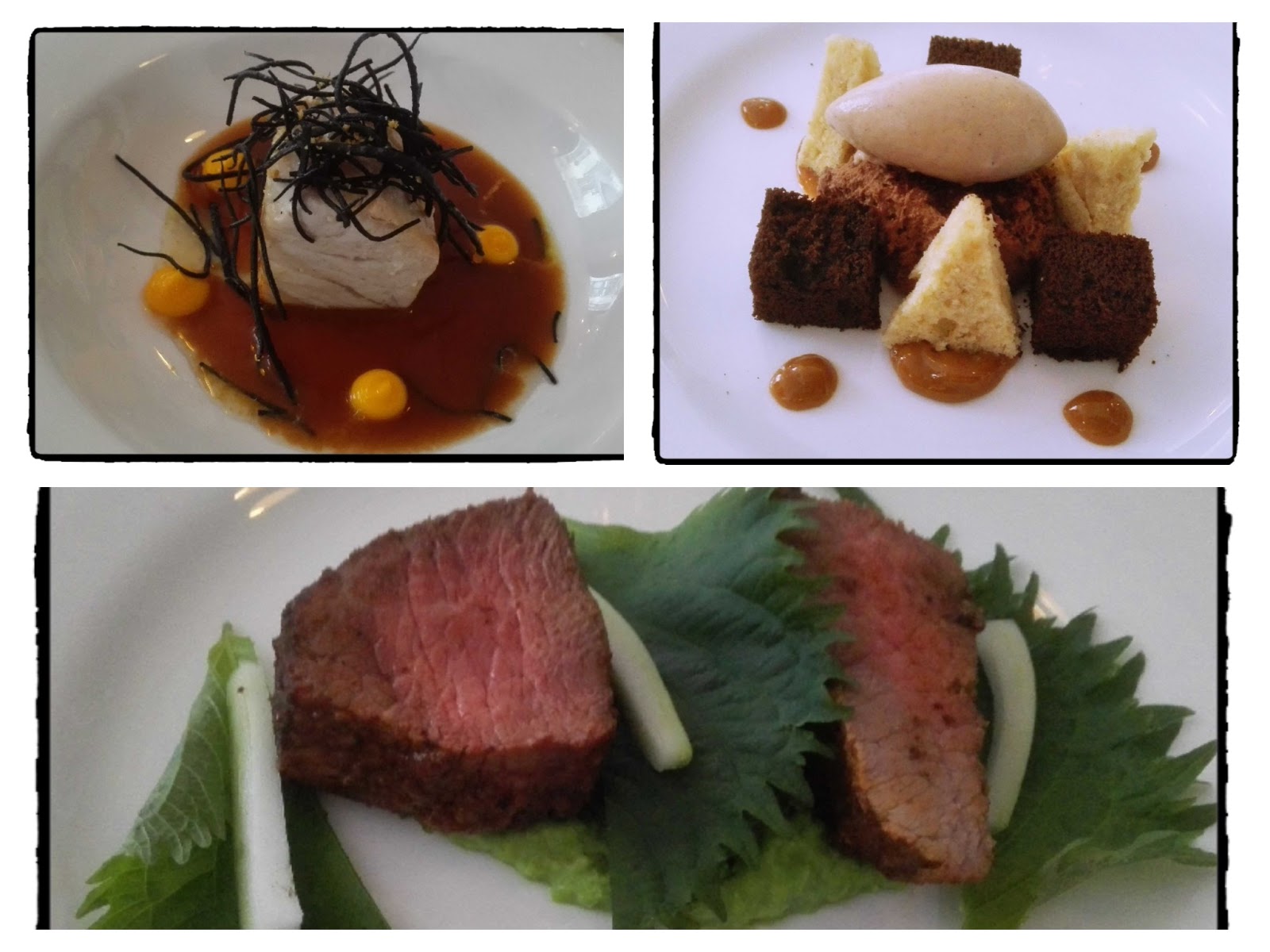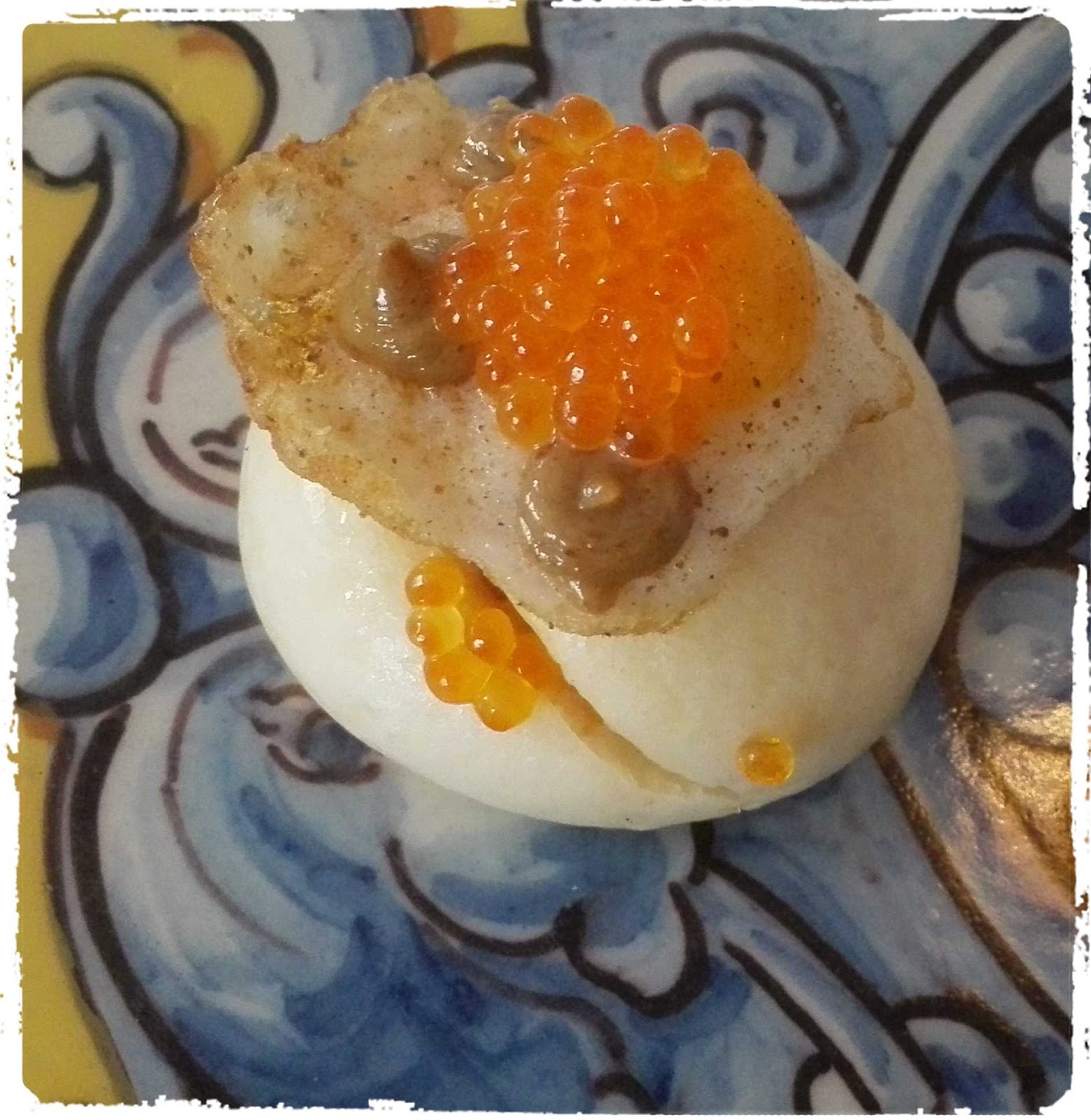 El menú preparado por el chef para la ocasión fue un resumen de la carta del restaurante y estuvo formado por tres aperitivos, tomate rama pequeño con anchoa menta, aireados de tortilla española con pimiento verde y anchoa, y bollo preñao de chorizo con huevo de codorniz y huevas de trucha, a los que siguieron tres platos -en formato de media ración- y un postre.