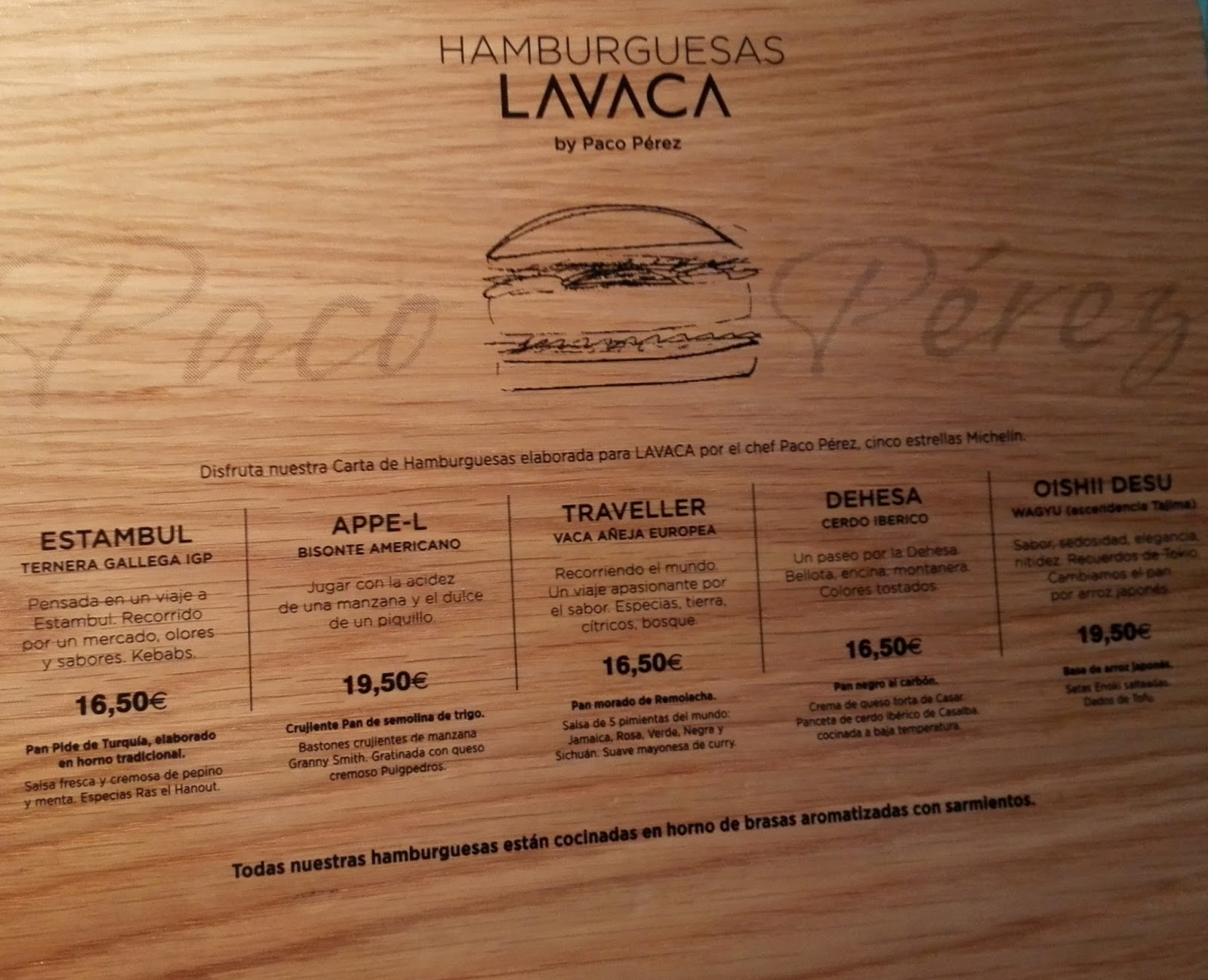 Desde hace unos meses los restaurantes de LaVaca (antes la vaca argentina), pertenecientes al grupo Zena, incorporan a su nueva carta la sapiencia culinaria del cinco estrellas Michelin Paco Perez. Y teníamos curiosidad por ver el resultado del trabajo de este chef, que ha desarrollado una carta específica de hamburguesas gourmet. Aquí tenéis nuestra impresiones, aunque se produzcan con un poco de retardo en el tiempo.