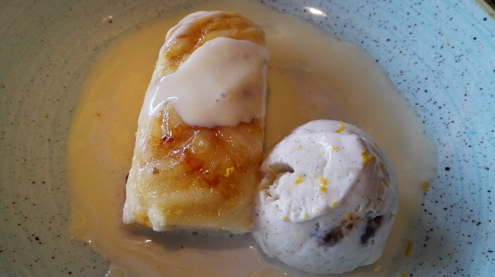 siempre exitosa torrija caramelizada con pan de brioche y crema grand marnier,