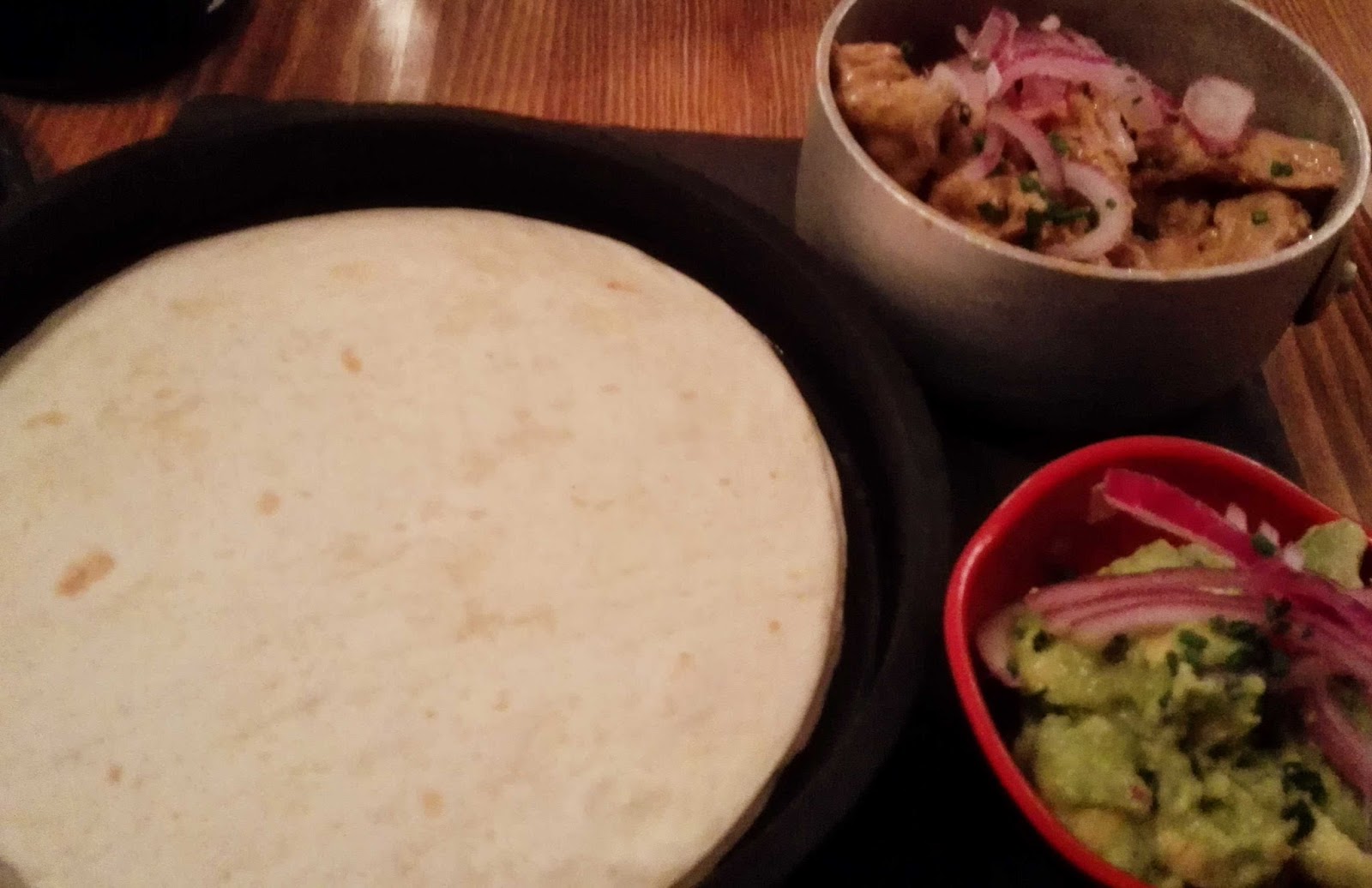 El plato llevaba lo típico: tacos de solomillo al chipotle salteados con champiñones, guacamole y tortillas de harina.