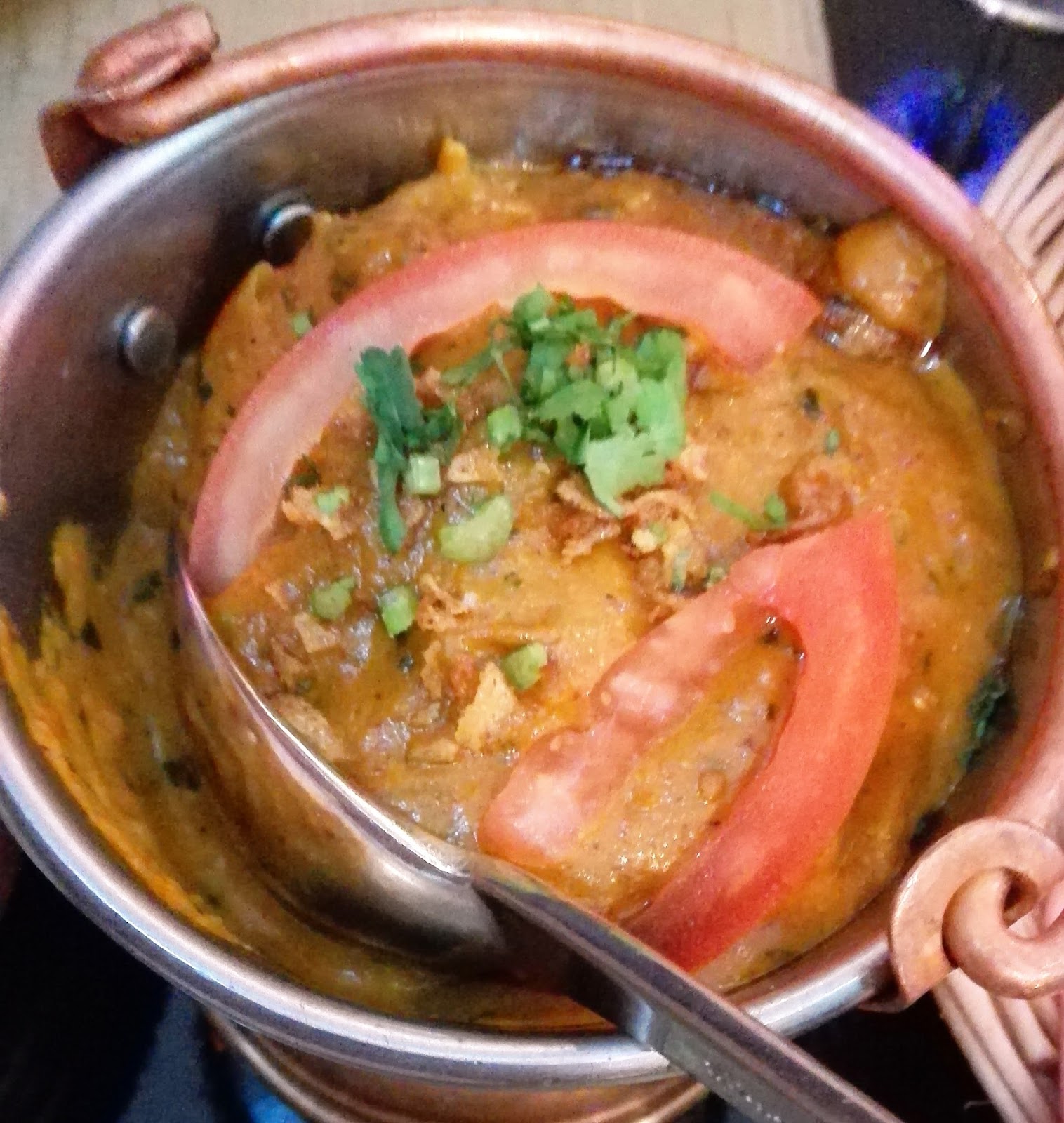 El restaurante cuenta con un menú degustación -para los que no están muy duchos en la cocina hindú- por 30 euros que contiene alguno de los mejores entrantes.