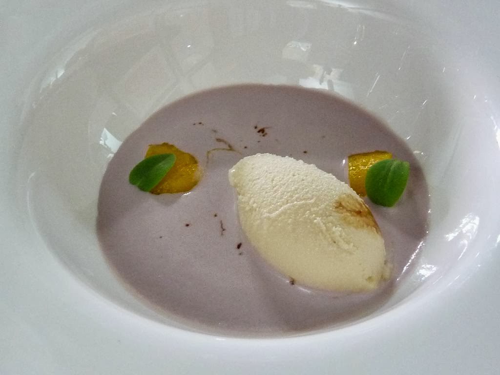 y el arenque marinado con hierbabuena y albahaca y sopa de arándanos, éste