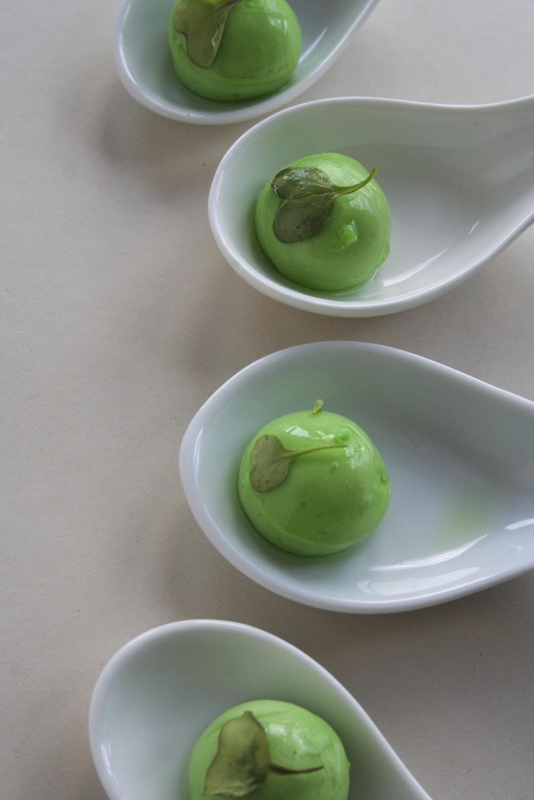 manzana se baña en agua de manzana con gelatina verde y se remata con una hojas
