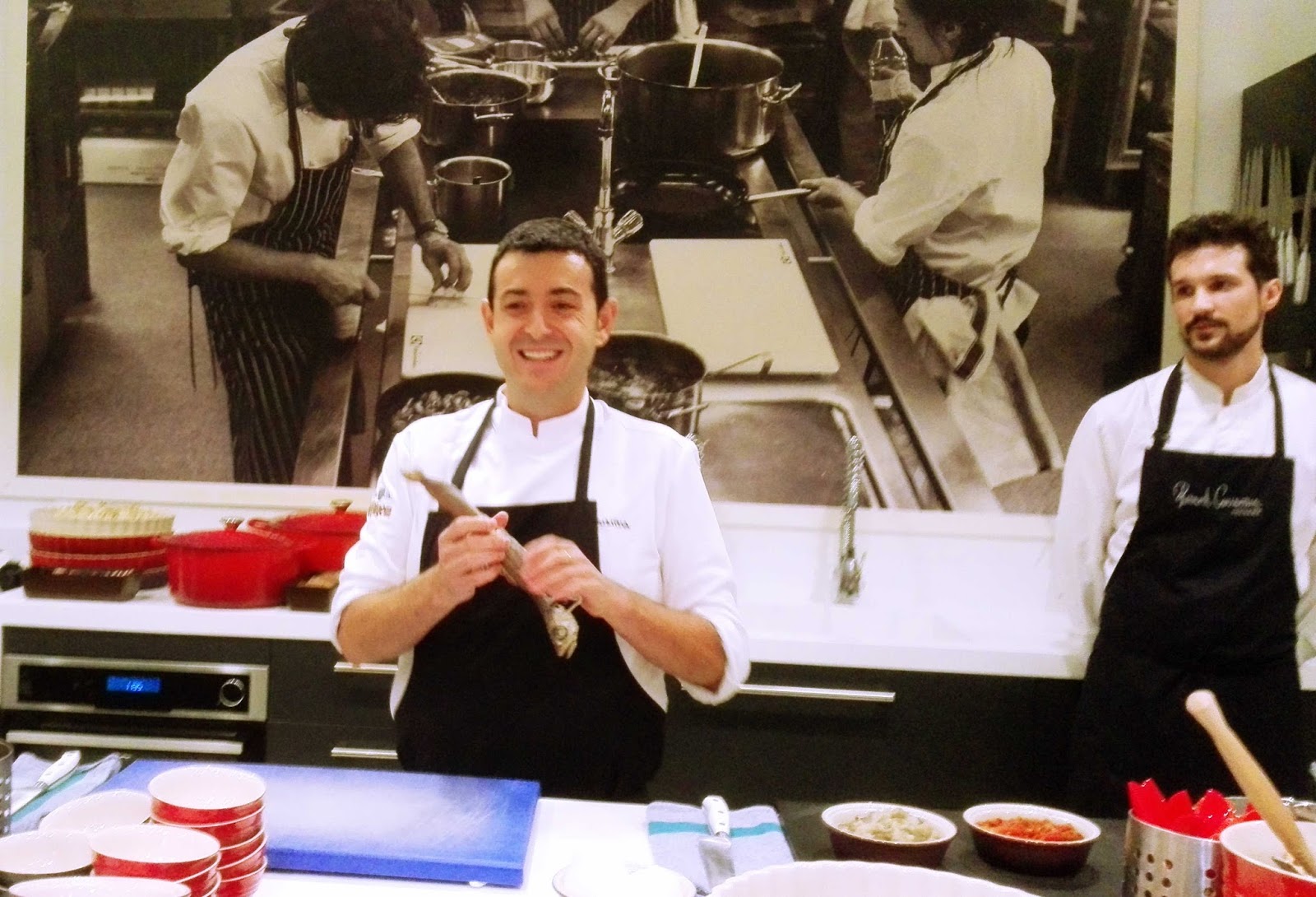Hay quien odia el lunes simplemente porque es el día después al domingo y existen personas que, como el pintor Vassily Kandinsky, te proponen que en un día así reflexiones sobre la luz y el color, o sobre las matemáticas aplicadas al arte. Es parecido a lo que propuso el chef Ricard Camarena (1 estrella Michelin y 4 soles Repsol) durante la presentación en el Kitchen Club de Madrid de su recien inagurado restaurante Habitual: Una reflexión sobre si se pueden hacer caldos y jugos sin agua, como ocurre con sus cocochas de merluza, y su base de colatura de anchoa, y si ésta base puede ser utilizada como parte contratatante de la primera parte de otro plato, que diría Groucho Marx.