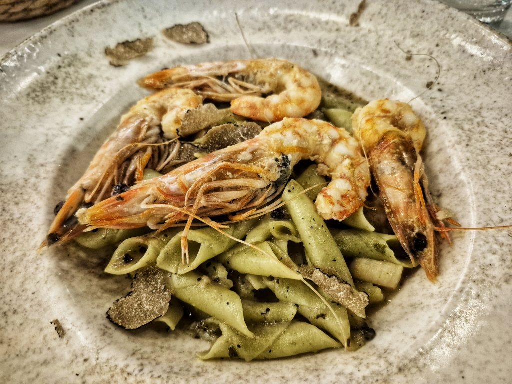 Entrante 📘 | PASTA CON TRUFA Y LANGOSTINOS |