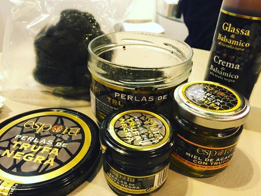 El tercer producto llamativo viene de Soria, en concreto de la empresa sporagourmet destacando las perlas de trufa negra que no son sino pequeñas esferificaciones elaboradas con jugo de trufa ‘tuber melanosporum’. Parecido al caviar hay quien lo denomina caviar de trufa. De esta misma provincia y empresa, destacar la miel de acacia con trufa -una miel con denominación de origen- y la glassa de balsámico a la trufa negra.