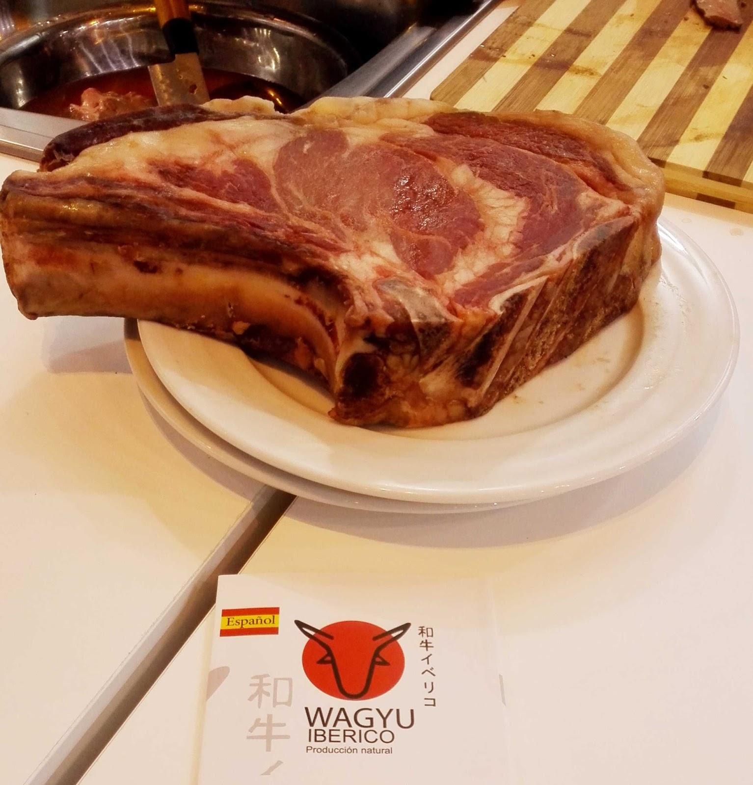 Pues bien, que quede claro, la carne de Wagyu (en algunos lugares llamado erróneamente falso Kobe), es una raza de buey que se cría en la región de Kobe, Japón. Hasta el verano pasado, este país prohibía exportar esta carne, característica por su extraordinaria infiltración de grasa y sus cualidades organolépticas y saludables. Tal vez por ello, y dada la demanda del consumidor y los restaurantes españoles, hasta ahora se importada de EEUU o Australia, entre otros países. De esta guisa, y por mor de las circunstancias, se ha obtenido una especie de Wagyu español o Wagyu ibérico que se cria genéticamente (debe tener al menos el 50 % de genética de Wagyu japonés) a partir de vacas burgalesas y gallegas, como la cachena. En la sierra de Gata, cerca de Monfrague, Cáceres, la empresa Carsierra, presente en el salón de Gourmets, ha cruzado Wagyu con limusin charolés y morucha, con resultados extraordinarios