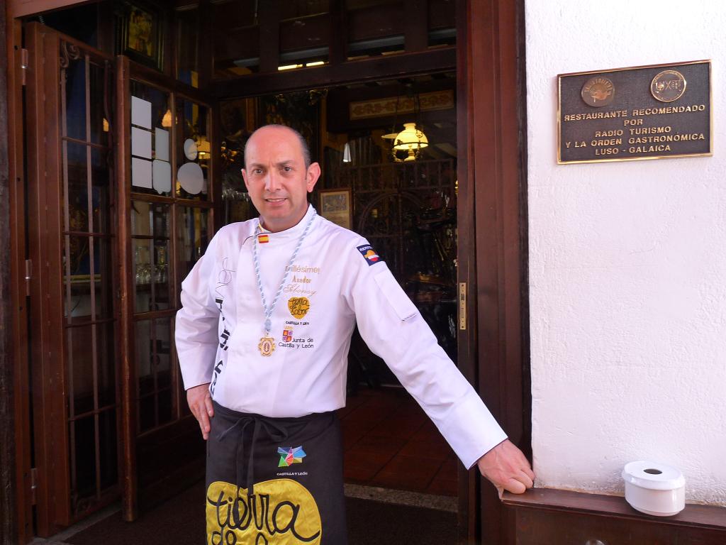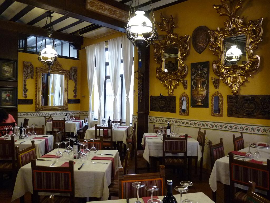 La carta de este Premio Nacional de Gastronomía -con plato de oro- en 2010 es sencilla: entrantes con jamón, ensaladas, ventresca y demás para compartir y luego la carne, que tiene como estrella al cochinillo, pero que también cuenta con chuletones, lechazo y todo con su IG (que es como una denominacion de origen regulada en las carnes de alta calidad) correspondiente.