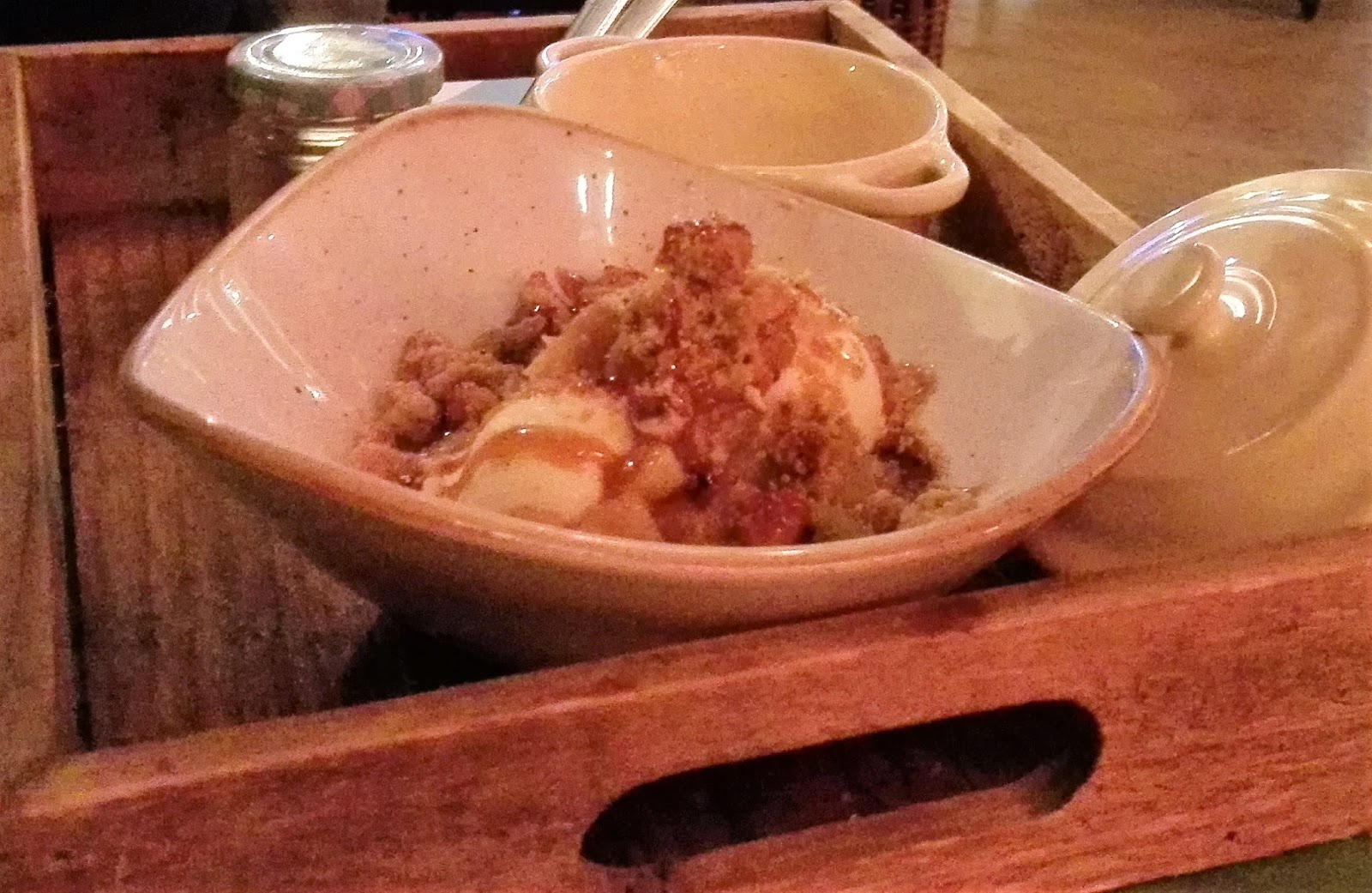 No excesivamente dulce, nos gustó mucho, mucho, mucho.. casi tanto como el ‘aparatoso’ (porque se monta en la propia mesa delante de los comensales) crumble de manzana ; make your own apple crumble se llama en plato en carta- .