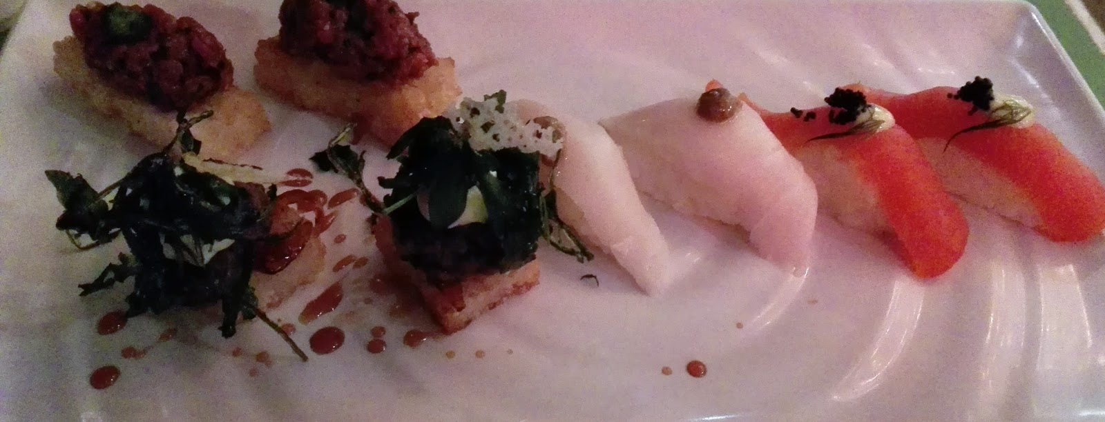 Todos ellos sabrosos y consecuentes con lo que se espera de ellos. Se sirven por piezas a un precio medio de 2,50 euros, salvo el de carabinero que se va hasta los 6,50 y el increible de wagyu en steak tartar, nigiri o hamburguesa.