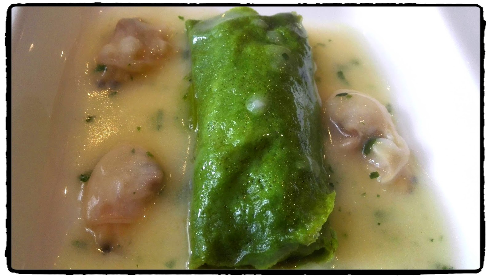 ¿Los mejores? no sabríamos decirlo, pero alimentan aun más cuando la superamable Achen, la madre del chef, se pasa por las mesas preguntando cómo va todo con una sonrisa que contagia y presagia lo que viene a continuación. Porque si las verduras son el punto fuerte de la huerta navarrica, no podía faltar su famosa menestra antes de acometer el clásico de la milhoja de patata ya mencionado y que no vamos a repetir más para no parecer cansinos. Solo decir que este plato ‘debería estar prohibido por ley’ y que si fuera pecado no dudaríamos en decir que el cielo puede esperar. Brutal hasta la extenuación, hay que recomponer el ánimo para domeñar el sentido del gusto ante de acometer las crepes de borrajas con salsa de almejas (estos dos platos forman parte del menú clásico de Túbal). Para entendernos, cuando llega el plato huele que alimenta y sabe a dulzura. Las borrajas emulsionan con la salsa verde que las acompaña como si fueran cocochas vegetales en una fusión de las que hacen pupa a la moral porque piensas que, después de esto, ya no puede haber algo mejor.