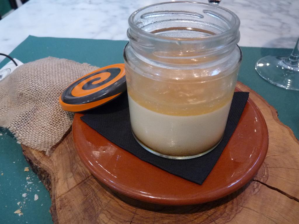 Cuando casi había presentado bandera blanca, Juanjo se empeñó en que tomara unas huevas de merluza con jamón de los Pedroches, y flan de queso al final. El acabose. Qué maravilla.