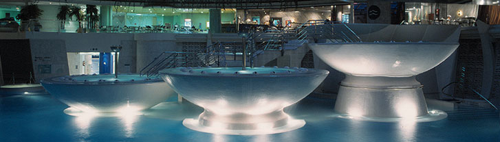 Pero no todo va a ser esquiar. Si hay nieve, como si no, aparte de excursiones de montaña, una de las joyas de Andorra sigue siendo el balneario spa de Caldea. (http://www.caldea.com/ ) Este centro termal, que es el más grande del sur de Europa, tiene una oferta variadísima desde el baño de pomelos, en su zona vip, pasando por las tazas de hidromasaje, a jacuzzis interior y exterior, baños turco…; es decir, de todo, pero a mi hay dos cosas que son las que más me llaman la atención. Por un lado, la salida al exterior a través de una especie de ríos –arroyo de corriente, lo llaman-, que te permiten estar en bañador, sumergido en al agua y al lado de la nieve, de día y, sobre todo, de noche ¡qué sensación! Y, por otro, el espectáculo, de luz y sonido (mondaigua, se llama), que, diseñado por el grupo Comediants, se realiza cada cierto tiempo (hay que consultar horario de pases) en su Gran Laguna Interior (los hay en versión corta y versión larga). No os lo perdáis, es algo espectacular, y se ven desde dentro de la propia piscina de agua termal que está entre 32 y 34 º centígrados.